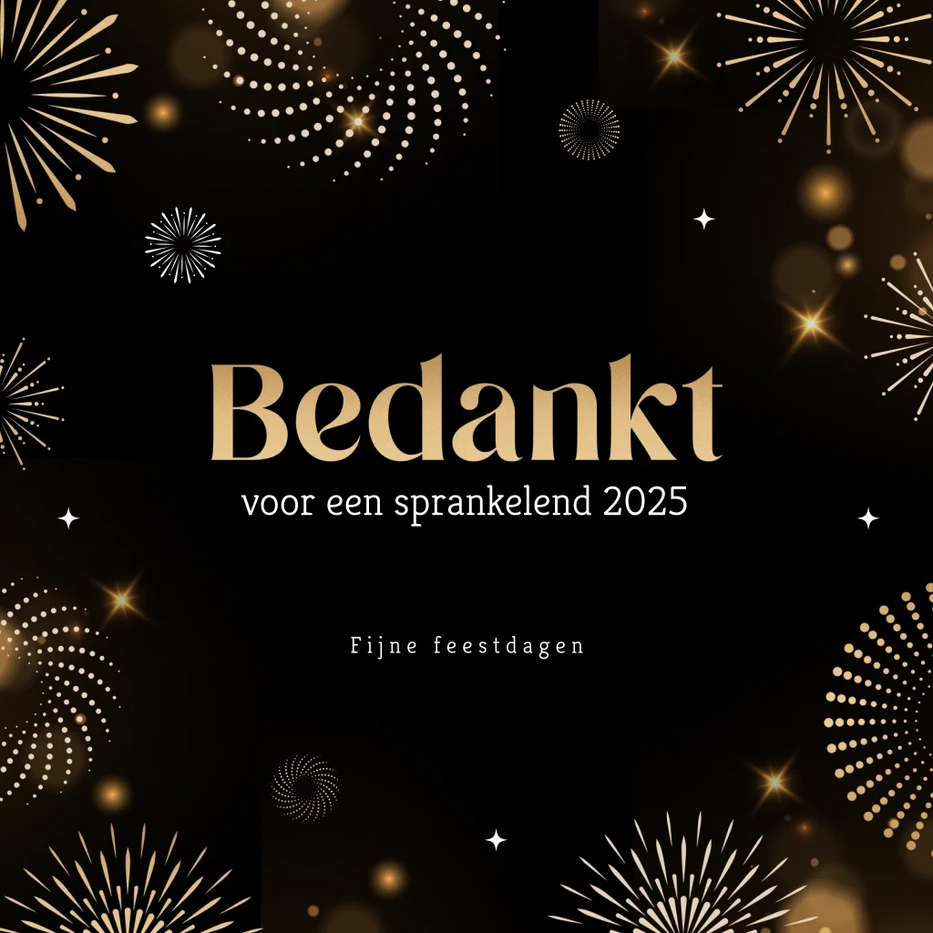 Zakelijke bedank kerstkaart met vuurwerk en goudlook