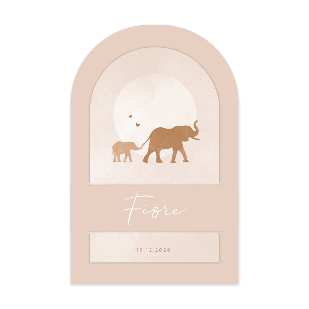 Uniek boogvormig insteek geboortekaartje met olifantjes