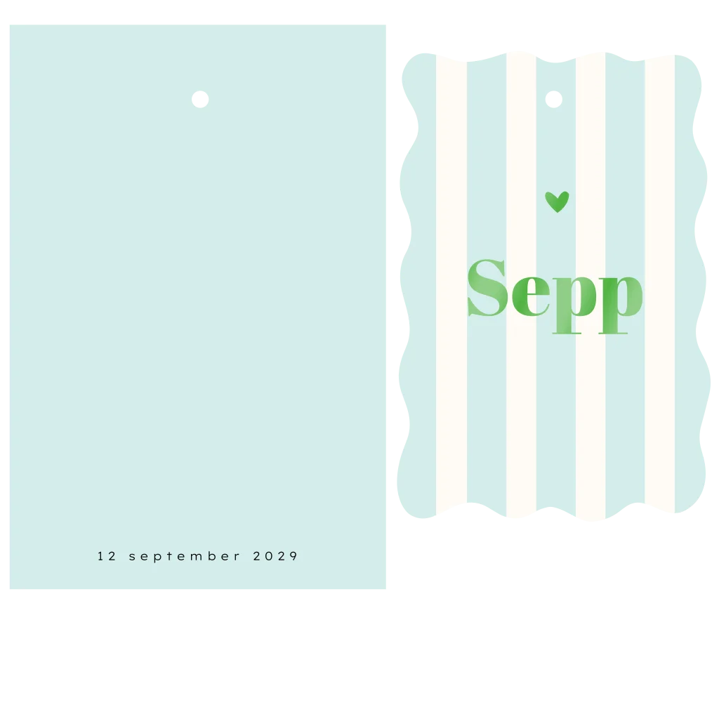 Hip en trendy labelgeboortekaartje voor een jongen. Dit felgekleurde geboortekaartje Sepp heeft blauw en witte kleuren op de achtergrond. De naam wordt in een gifgroene hoogglans kleur op het kaartje gedrukt.| Totaalprijs: 0 |