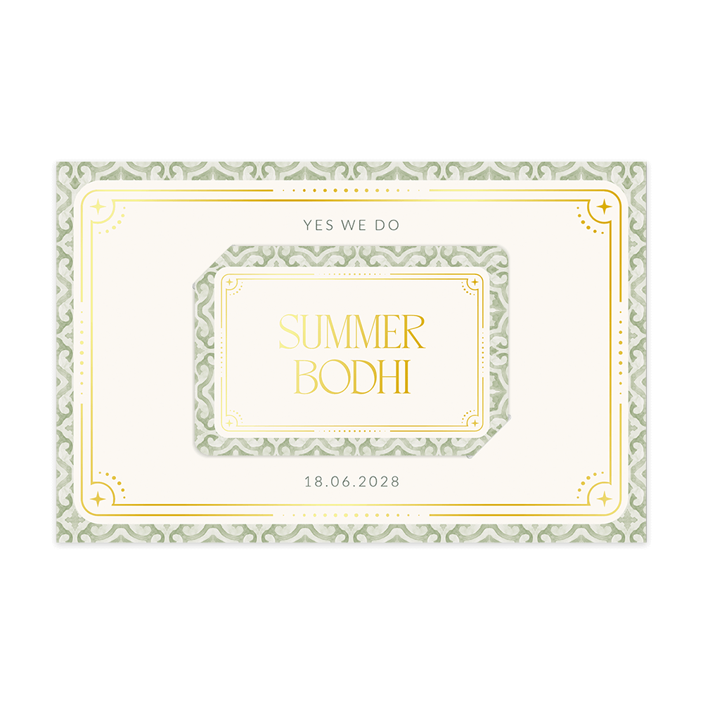 Ontdek deze prachtige boho insteekkaart met goudfoliedruk! Deze kaart past perfect bij de mediterraanse trouwset. Deze huwelijksuitnodiging is voorzien van een boho kader en mediterraans patroon. De ingestoken kaart heeft ronde hoeken. Pas deze trouwkaart naar eigen wens aan in onze online editor.