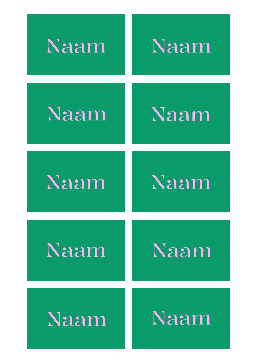Naamkaartjes voor jouw 21 diner of ander themafeestje. De naamkaartjes hebben een groene achtergrond met roze letters.