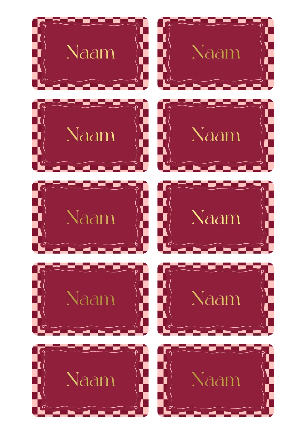 Naamkaartjes met goudfolie en een blokjes achtergrond met speels kader! Met een prachtig design en foliedruk stralen deze naamkaartjes een vleugje luxe uit. Pas de naamkaartjes in onze online editor aan, zodat elke gast weet waar diegene mag zitten tijdens jouw fantastische 21 diner.