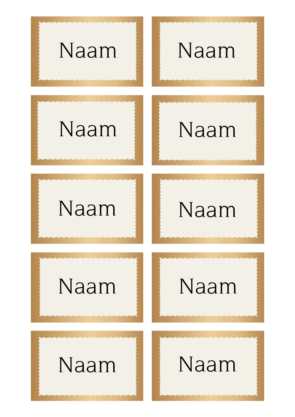 Naamkaartjes voor jouw 21 diner of ander themafeestje. De naamkaartjes hebben een goudlook achtergrond en een golvend kader in de kleur beige.| Totaalprijs: 0 |