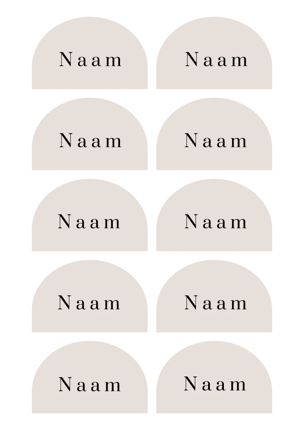 Maak jullie bruiloft compleet en bestel naamkaartjes om bijvoorbeeld de tafelschikking bekend te maken. Deze naamkaartjes hebben een half ronde vorm een een basic design. Elk minikaartje is apart aan te passen in onze editor.