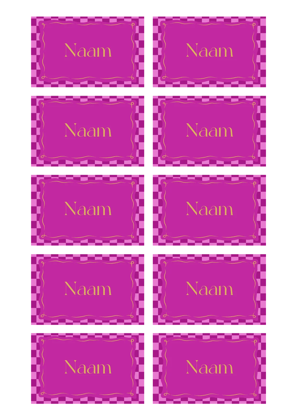 Maak jullie bruiloft compleet en bestel deze naamkaartjes in de stijl van jullie trouwkaart. Op deze naamkaartjes zie je een opvallend patroon met een speels kader waar je de naam van de gast kunt noteren. Deze naamkaartjes passen perfect bij deze trouwkaart. Elk minikaartje is apart aan te passen in onze editor.| Totaalprijs: 0 |