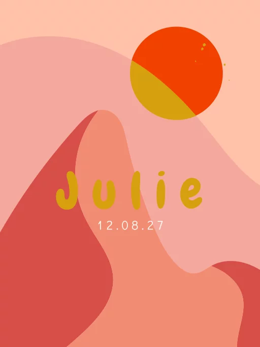 Deze canvas geboorteposter hoort bij geboortekaartje Julie, maar kan natuurlijk ook op zich zelf worden gebruikt.