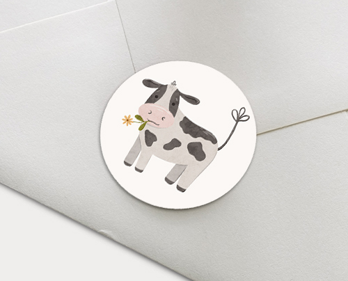 Sluitsticker met een aquarel illustratie van een lief koetje van de boerderij. Deze sluitzegel is unisex en daardoor geschikt voor zowel een jongen of meisje. Leuk om het geboortekaartje mee af te maken!