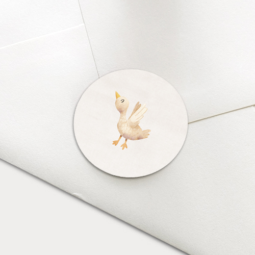 Een schattige sluitzegel met een vrolijk eendje op een beige achtergrond. Maak het geboortekaartje van jullie zoon of dochter helemaal af met deze leuke sluitzegel. Een vrolijke eend of gans is helemaal leuk om op je sluitzegel te zien!