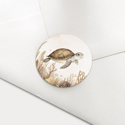 Een prachtige sluitzegel met een onderwaterwereld thema. Een zwemmende schildpad met neutrale kleurtinten.