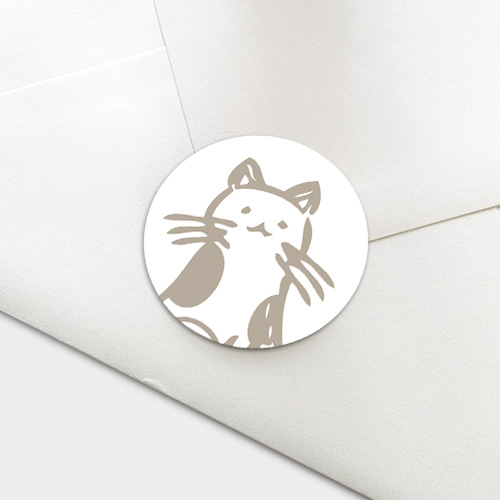 Sluitzegel met een lijntekening van een kat. Dezes sluitsticker is perfect om de enveloppen van de geboortekaartjes van je zoon of dochter mee dicht te plakken.
