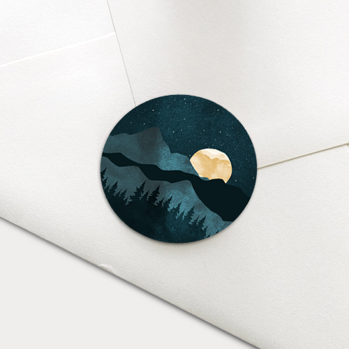 Sluitzegel met berglandschap in de nacht. Op de achtergrond staan een maan en een sterrenhemel.| Totaalprijs: 0 |