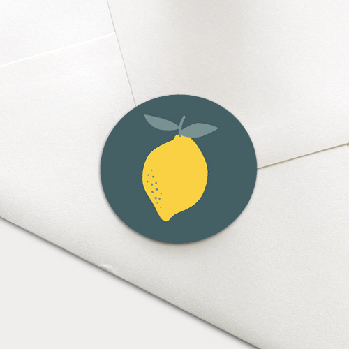 Maak het geboortekaartje van jullie zoon of dochter helemaal af met deze trendy, fruitige sluitsticker. Op deze sluitzegel een blauwgroene achtergrond met een citroen.