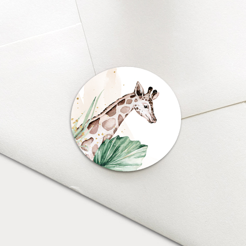 Maak je geboortekaartje helemaal compleet met deze sluitzegel met een mooie aquarel van een girafje tussen botanisch blad in de jungle.
