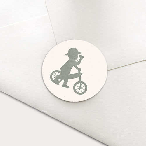 Sluitzegel voor de geboorte van een jongen, het avontuur kan beginnen! Plak deze sluitsticker op de envelop van het geboortekaartje en maak het het setje helemaal compleet. Op deze sluitzegel een silhouet van een jongetje op een loopfietsje met verrekijker en jungle hoedje op.