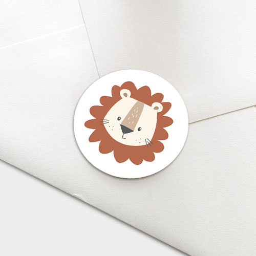 Sluitzegel voor een geboortekaartje met een schattige leeuw.