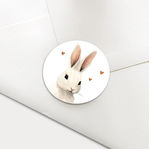 Sluitzegel met een lief konijntje met hartjes. Deze sluitzegel is perfect om de envelop van het geboortekaartje mee dicht te plakken en alvast een kleine sneakpeak te geven naar het geboortekaartje.