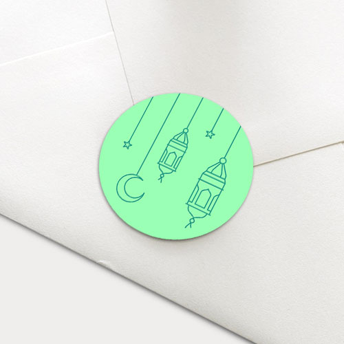 Sluitsticker met een illustratie van olielampjes en een groene achtergrondkleur. Maak het geboortekaartje helemaal af met deze bijpassende sluitzegel.