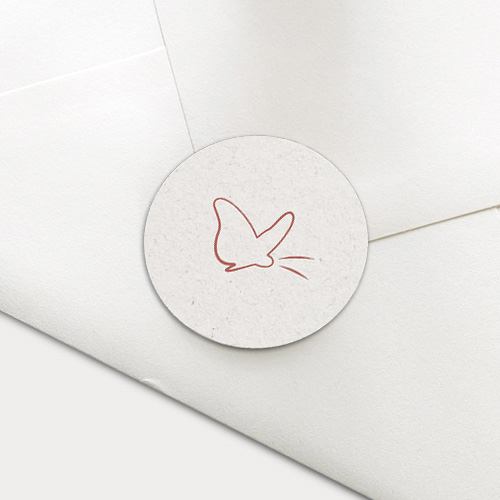 Geboorte sluitsticker met een lijntekening van een vlinder. Deze sluitzegel past perfect bij een unisex geboortekaartje.