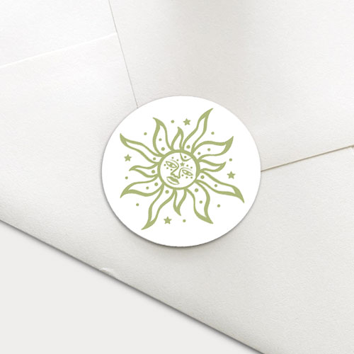 Sluitsticker met een zon met sterren. Deze sluitzegel is unisex en daardoor geschikt voor zowel een jongen of meisje. Leuk om het geboortekaartje mee af te maken!