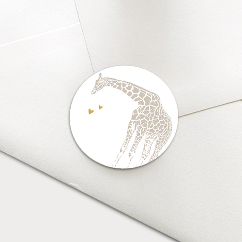 Sluitsticker met een giraffe in beige kleuren met hartjes. Deze sluitzegel is unisex en daardoor geschikt voor zowel een jongen of meisje. Leuk om het geboortekaartje mee af te maken!