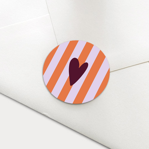 Een prachtige sluitzegel voor de geboorte van jullie dochter. Op deze sluitzegel zie je een gestreepte achtergrond in roze en oranje kleuren met een donkerroze hartje.