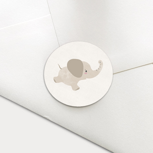 Een lieve sluitzegel met een geïllustreerd schattig olifantje met een beige achtergrond. Deze sluitzegel is perfect voor een unisex geboortekaartje.
