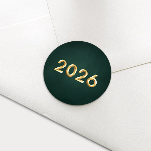 Stijlvolle sluitzegel voor de feestdagen met het jaartal 2026 in goud. Prachtig om je enveloppen met kerstkaarten mee dicht te plakken.