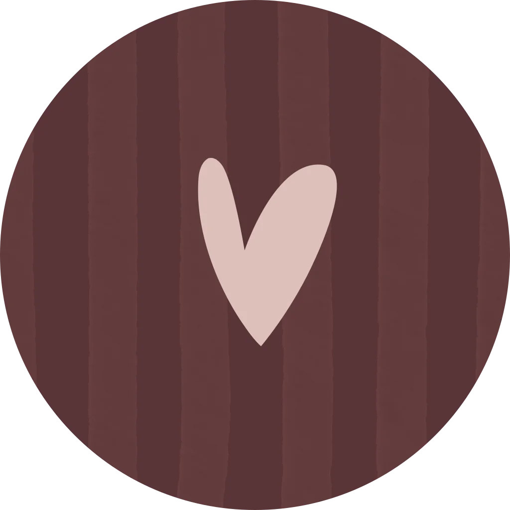 Ronde sluitzegel voor de envelop van je trouwkaart. Deze sluitzegel heeft een hip ontwerp met strepen in een burgundy kleur. Helemaal de kleur van nu! Het roze hartje maakt het helemaal af. Pas de sluitzegel op maat makkelijk aan in onze editor. De stickers worden op een vel met 25 stuks gedrukt.