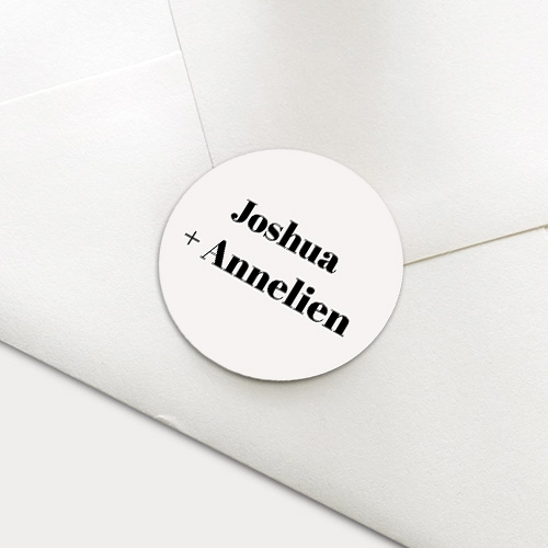 Bewerkbare sluitzegel om de envelop van jullie trouwkaart mee dicht te plakken. Op deze cleane sluitsticker in zwart-wit staan de namen van het bruidspaar.| Totaalprijs: 0 |