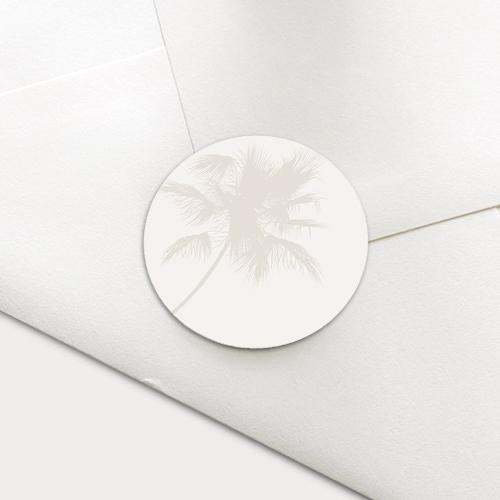 Zomerse sluitzegel met palmboom in zachte beigetinten.