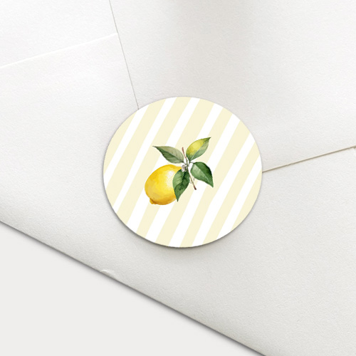 Een fantastische sluitzegel met een gestreepte achtergrond in gele kleurtinten en een illustratie van een citroentje.| Totaalprijs: 0 |