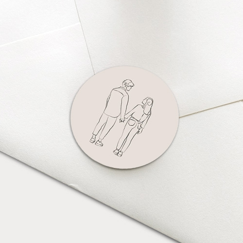 Een stijlvolle sluitzegel met een oneline lijntekening van een koppel. Pas naar eigen wens aan in de editor. Een lijntekening op maat is ook zeker mogelijk. Neem gerust contact met ons op: info@blijkaartje.nl.