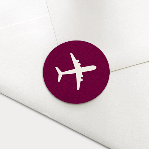 Een prachtige sluitzegel met een vliegtuig. Deze sluitzegel past perfect bij een avontuurlijke en reislustige trouwkaart.