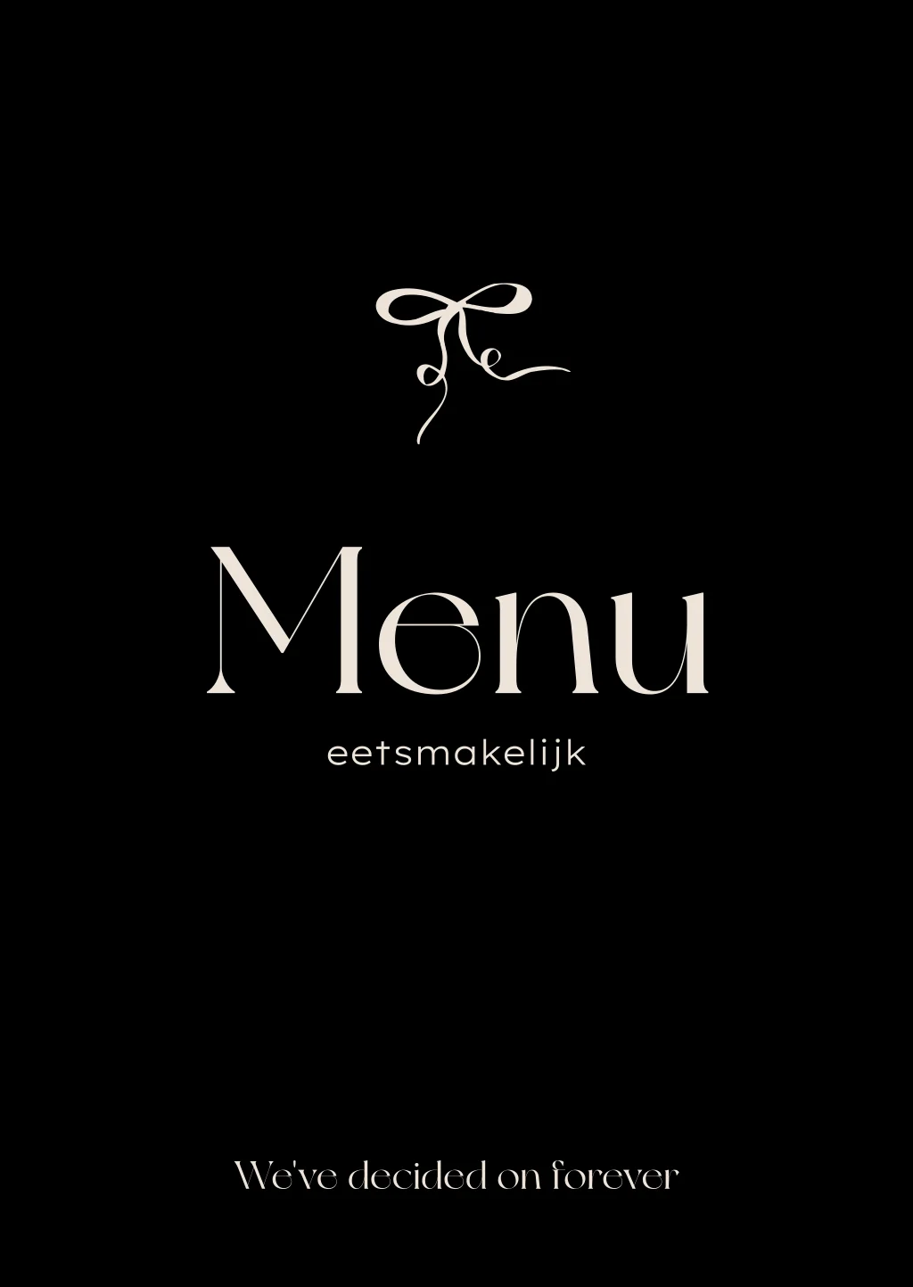 Een menukaart in de vorm van een tentkaart is een unieke manier om je bruiloftsdiner zichtbaar te maken. Deze tent menukaart heeft een zwarte achtergrond met beige details. Pas de teksten, lettertypes en kleuren eenvoudig aan in de editor.| Totaalprijs: 0 |