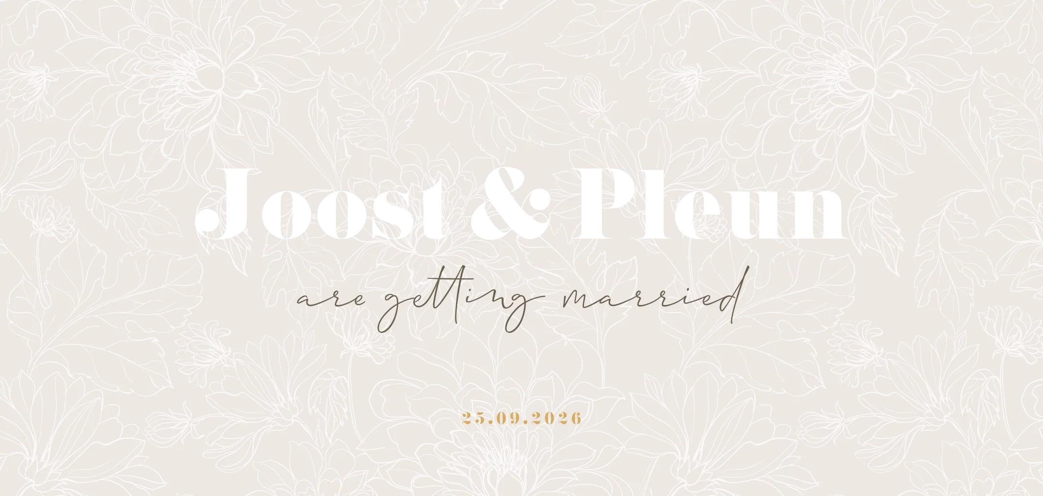 Luxe trouwkaart met foliedruk en afgeronde hoeken. Deze hippe huwelijksuitnodiging heeft een beige achtergrond met een mooi wit patroon van bloemen. De tekst op deze kaart wordt gedrukt in echt goudfolie. Dit geeft je kaart een extra luxe uitstraling. Liever koperfolie, zilverfolie of roséfolie? Dit kun je eenvoudig aanpassen in onze editor.