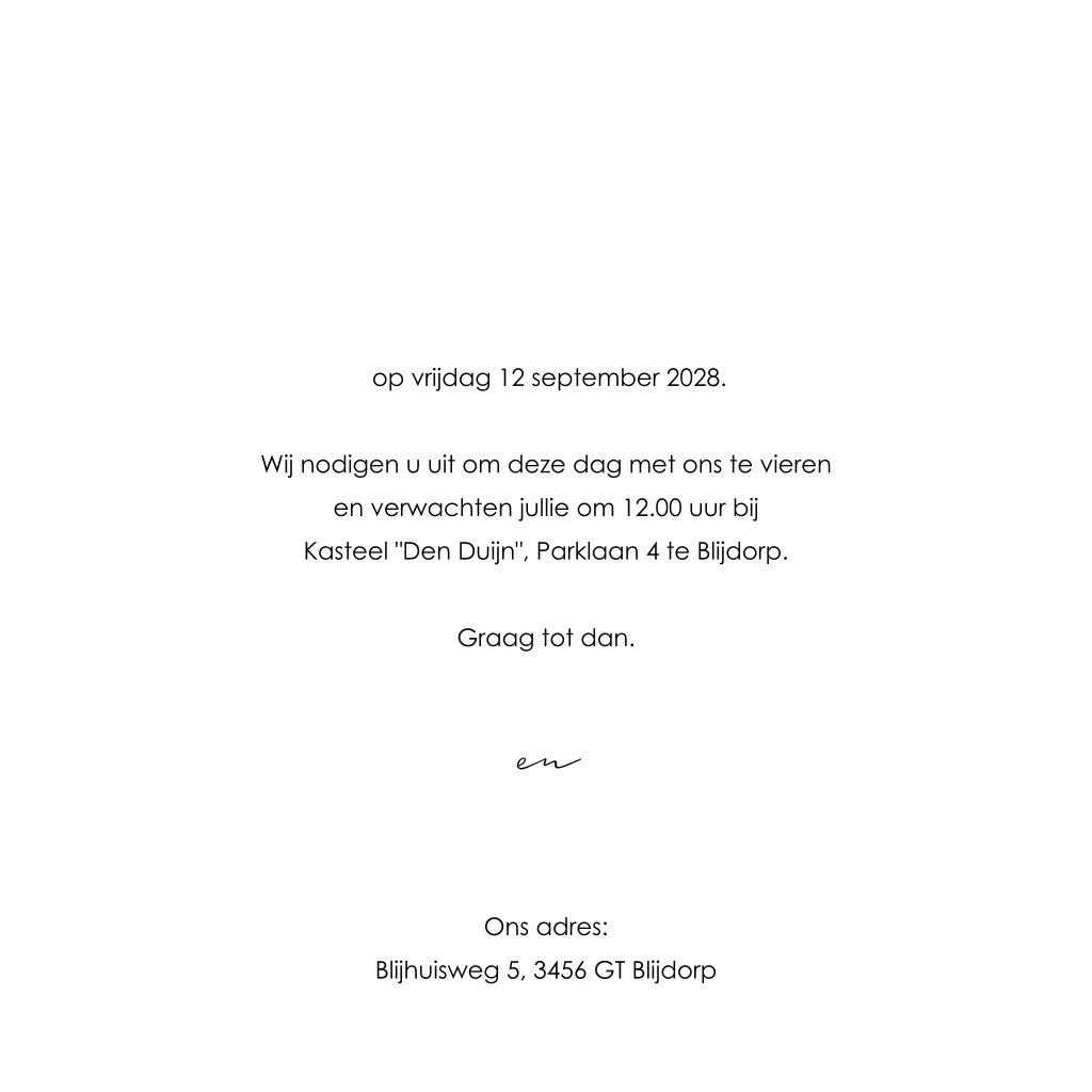 Rustige basic trouwkaart voor jullie huwelijk met echt foliedruk. De trouwkaart heeft een chique uitstraling door de combinatie van de zwarte achtergrond met de goudfolie. Pas deze huwelijksuitnodiging naar eigen smaak aan in de editor. Hulp nodig? Laat het ons gerust weten.