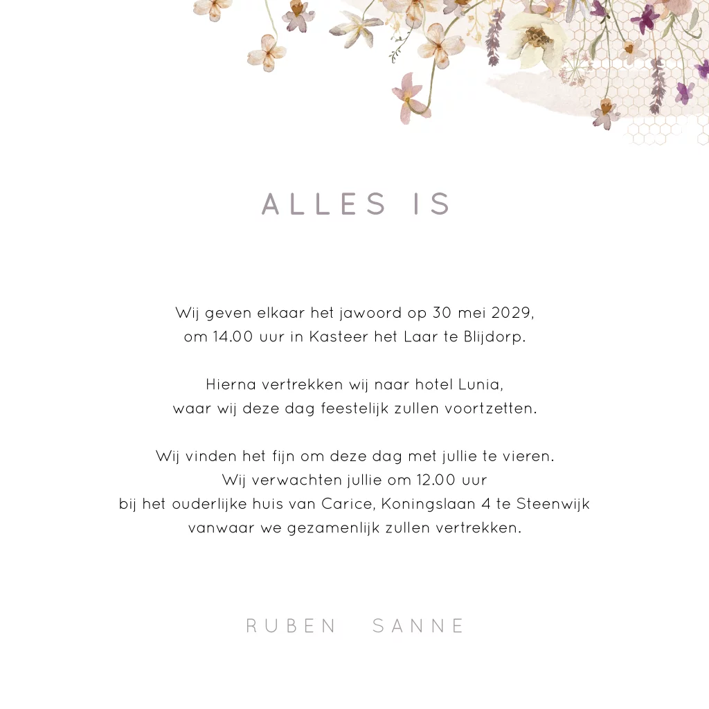 Deze huwelijksuitnodiging is onderdeel van de nieuwste trend "floral".