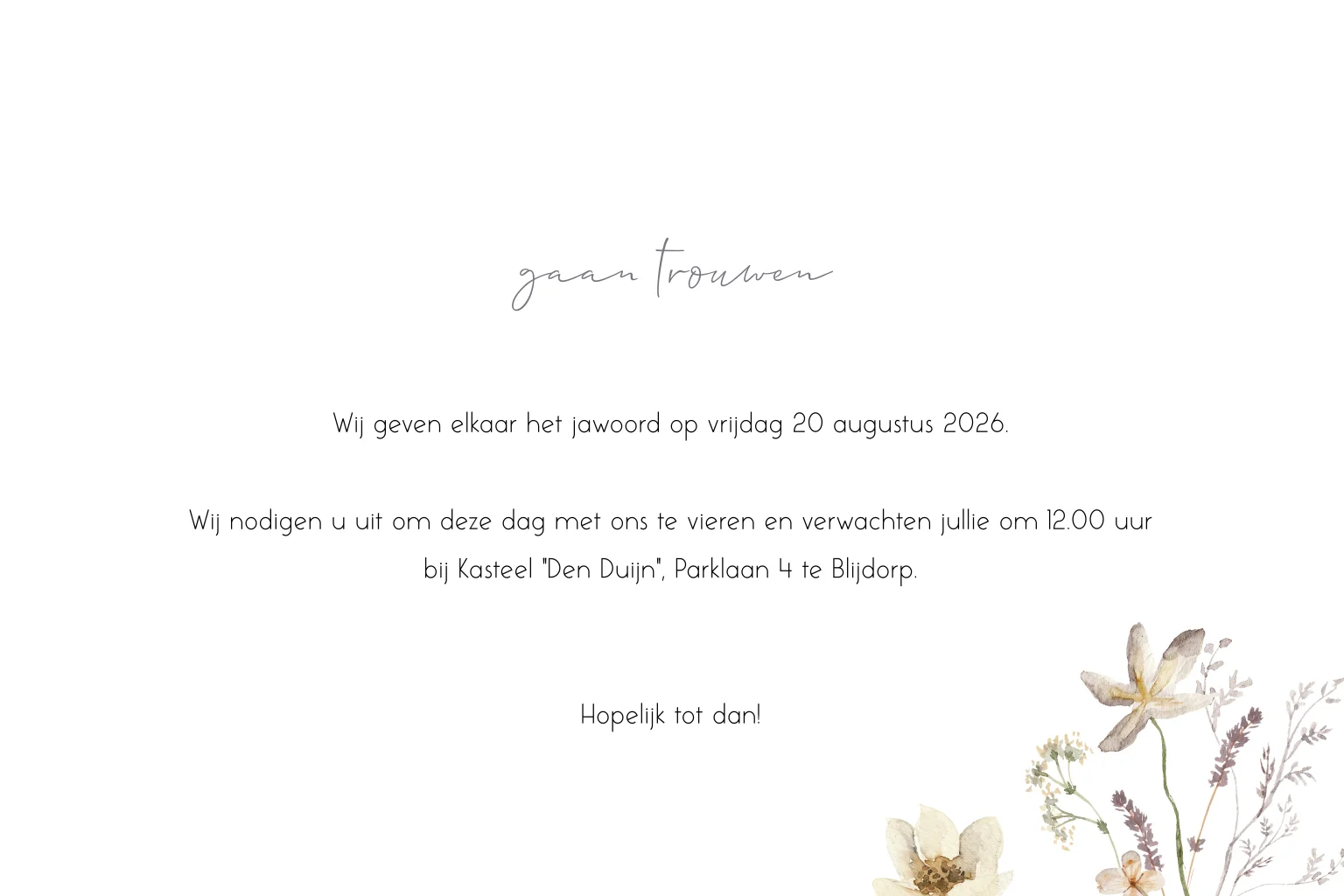 Deze huwelijksuitnodiging is onderdeel van de nieuwste trend "floral".