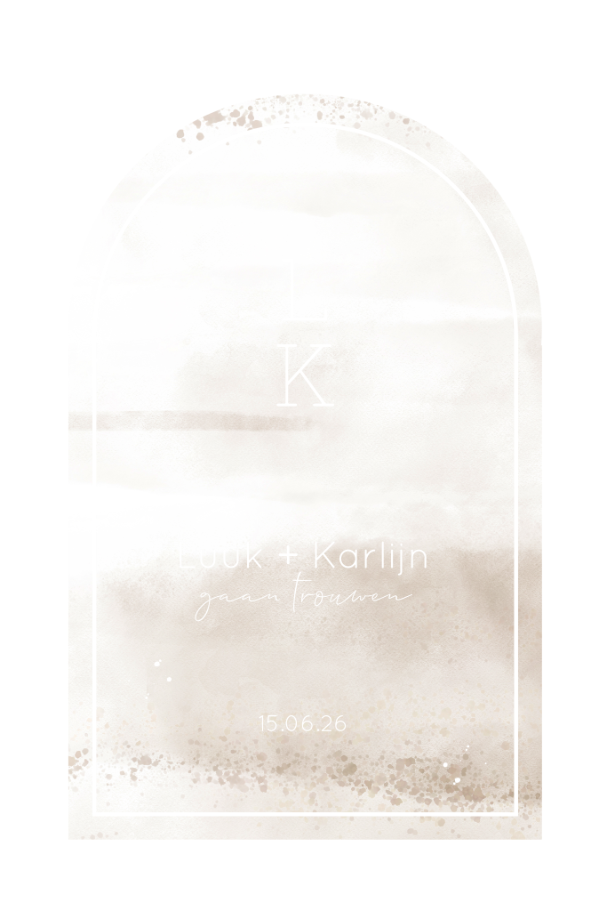 Een chique trouwkaart met een kader en echt goudfolie. Het kader en de tekst worden gedrukt in goudfolie, wat de kaart een luxe uitstraling geeft. Ook mogelijk in roséfolie, zilverfolie, zwartfolie of koperfolie. In combinatie met de witte achtergrondkleur, komt de tekst in goudfolie perfect tot zijn recht. Hulp nodig bij het ontwerpen? Laat het ons gerust weten.
