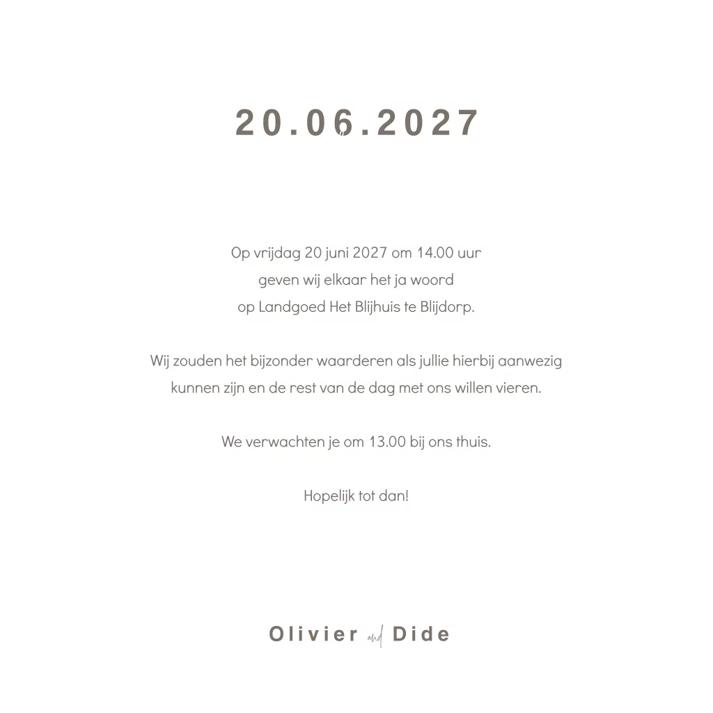 Wat is er mooier dan een bruiloft? Een bruiloft waar je je familie en vrienden uitnodigt met een prachtige, unieke trouwkaart. Deze trouwkaart heeft een rustige uitstraling door de aquarel kleuren bruin en beige. Het kaartje is voorzien van goudfolie, wat deze huwelijksuitnodiging een luxe uitstraling geeft. De organische vorm geeft deze kaart een modern en rustig gevoel.