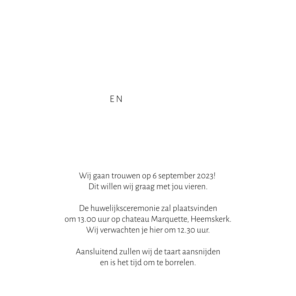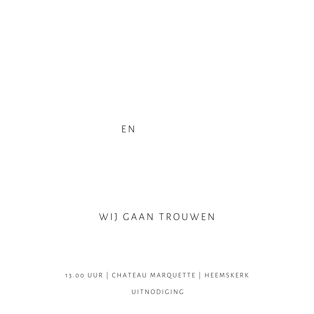 Rustige en cleane trouwkaart, maar door de sierlijke letters in echt goudfolie heeft deze uitnodiging een luxe uitstraling. Liever zilverfolie, koperfolie of roséfolie? Dit is gemakkelijk aan te passen in de editor.