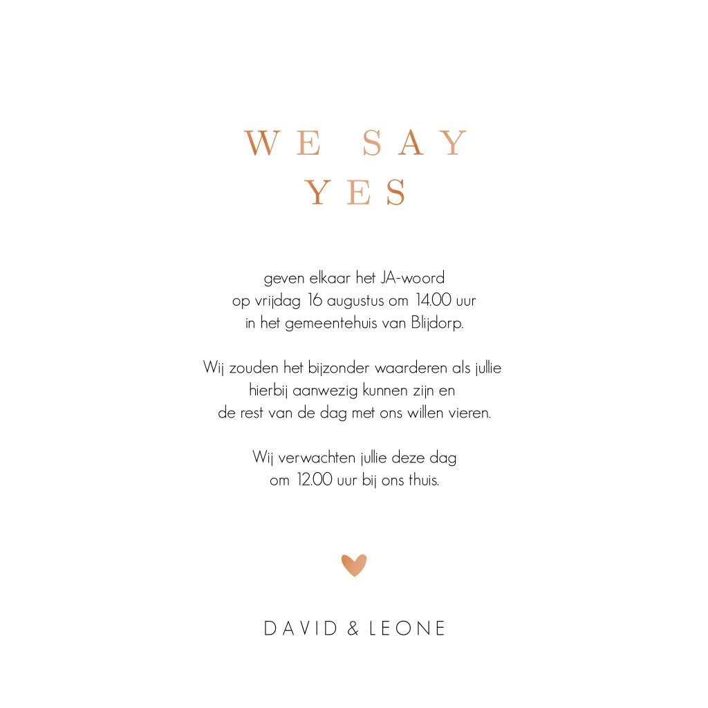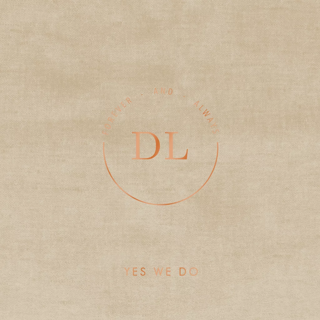 Rustige uitnodiging voor jullie bruiloft met op de achtergrond een lichte linnen look. De initialen van het bruidspaar staan in een cirkel, met daarbij de tekst " Forever and always." De koperkleurige elementen op deze trouwkaart worden gedrukt in hoogglans. Hoogglans zorgt voor een luxe uitstraling en maakt dit kaartje extra speciaal. In onze editor kun je de kleur van de folie makkelijk wijzigen naar goudfolie, zilverfolie of roséfolie.