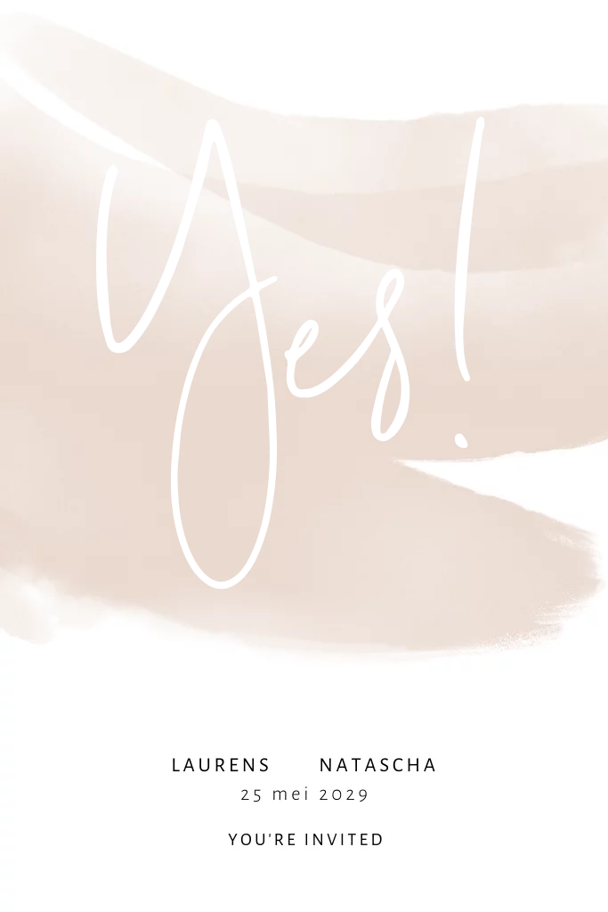 Roséfolie trouwkaart met Yes en aquarel veeg