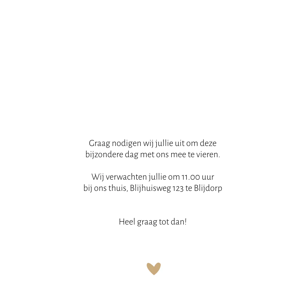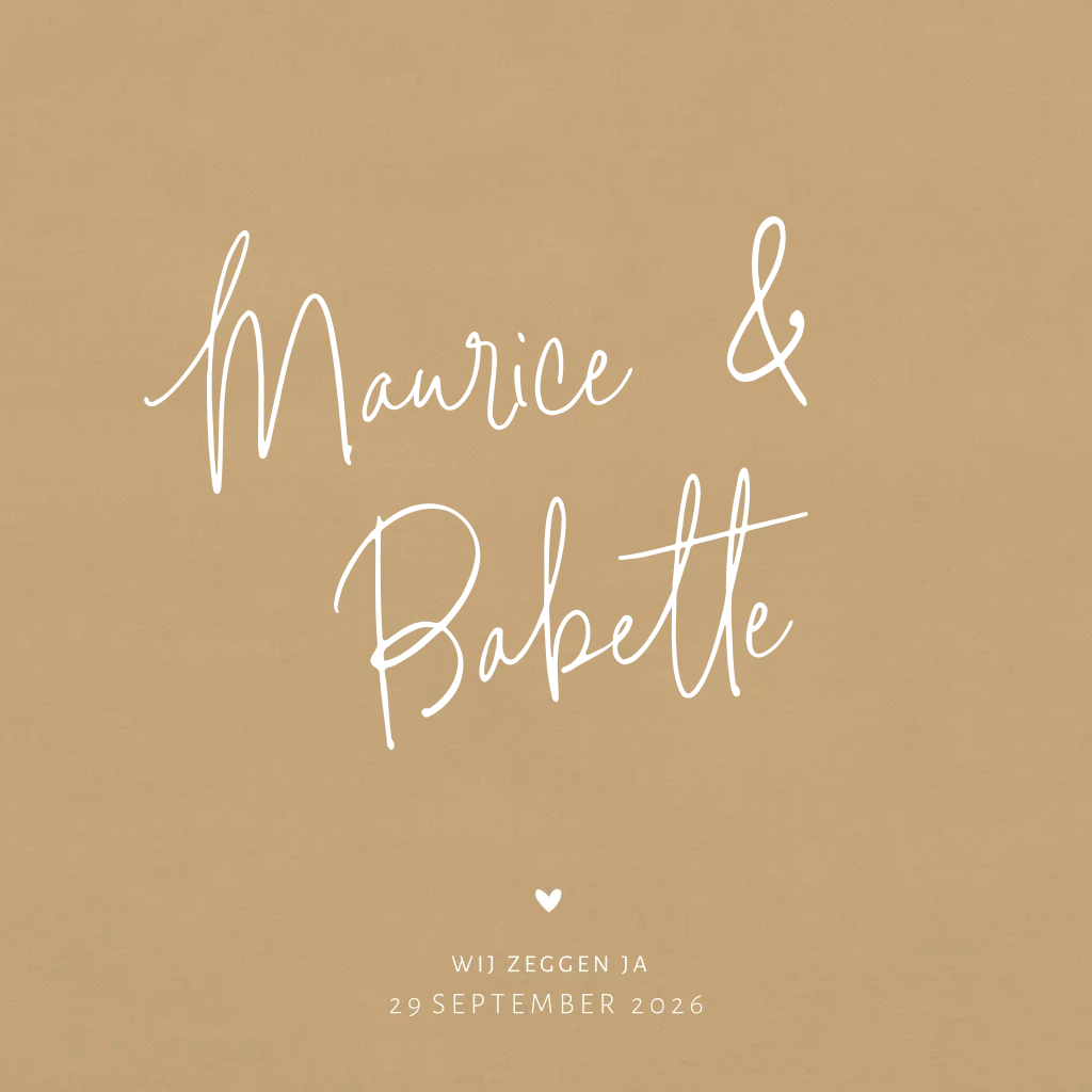 Luxe trouwkaart met de namen van het bruidspaar in echt zilverfolie. Op de binnenzijde staat het dagprogramma weergegeven met symbolen welke ook in echt zilverfolie worden gedrukt. Dit geeft de kaart een exclusieve uitstraling. Ook mooi met goudfolie, koperfolie of roséfolie.