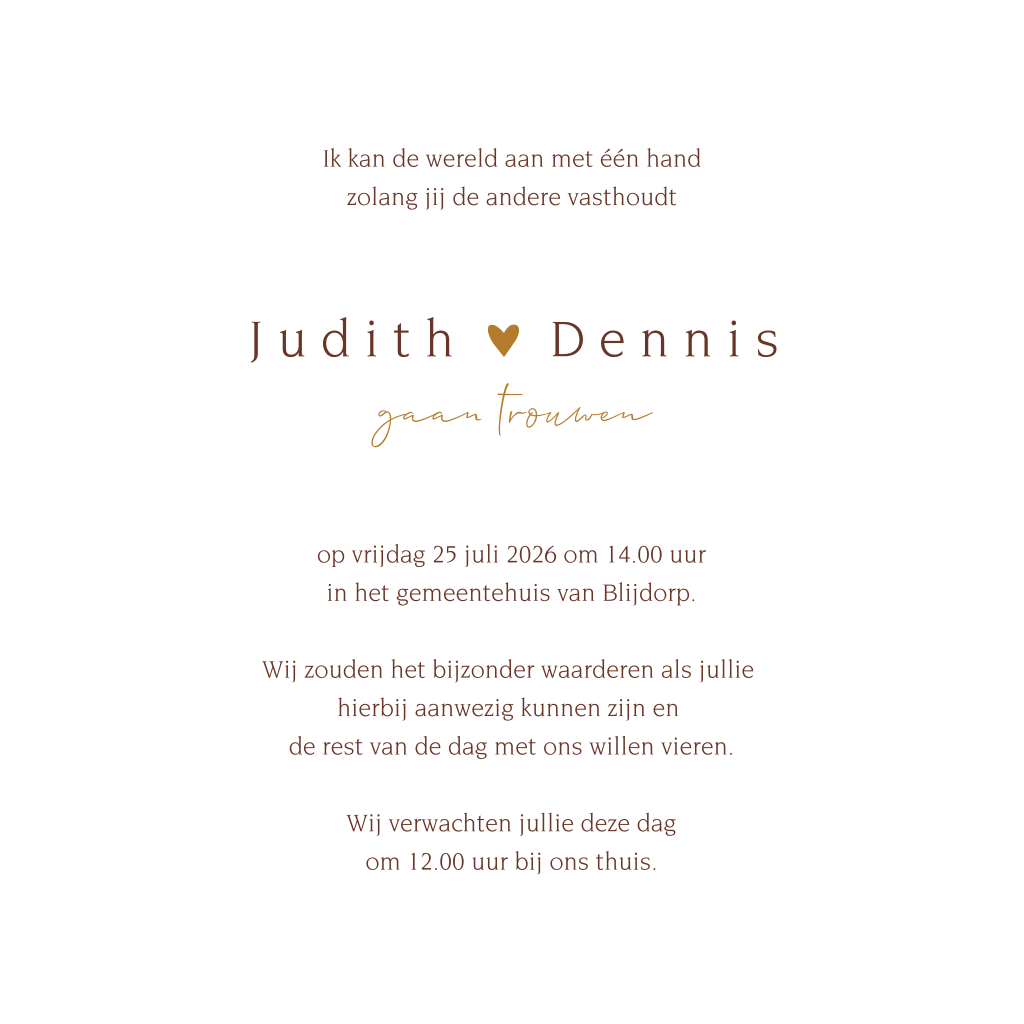 Liever andere kleuren of lettertypes? Dit is gemakkelijk aan te passen in de editor. Ook mogelijk met goudfolie, zilverfolie, roséfolie of zwartfolie.