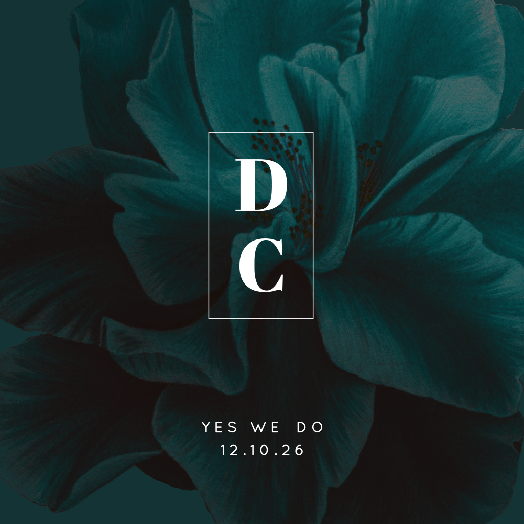 Nodig jullie gasten uit met deze moderne trouwkaart met echt roséfolie. Op de achtergrond een prachtige bloem met daarop jullie voorletters in echt folie. De folie heeft een mooie glans en springt er helemaal uit in combinatie met de donkere achtergrond. Teksten en kleuren zijn aan te passen in onze editor. Ook de kleur van de folie kun je makkelijk wijzigen naar goudfolie, zilverfolie, koperfolie of zwartfolie.