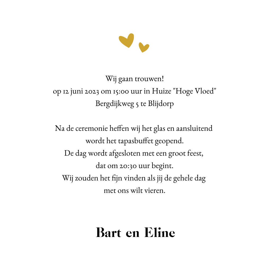 Hippe en exclusieve foto trouwkaart in de vorm van een magazine. De gouden elementen op de voorkant van deze huwelijksuitnodiging worden in echt goudfolie gedrukt. Dat maakt deze trouwkaart extra bijzonder. Liever zilverfolie, koperfolie of roséfolie? Dat kan! Dit is gemakkelijk aan te passen in de editor.