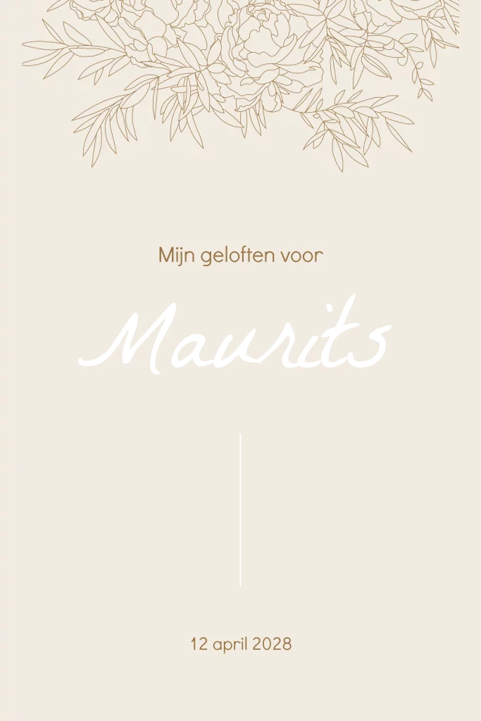 Prachtig stijlvol trouw geloftenboekje met een outline lijntekening van bloemen en goudfolie. De goudfolie geeft een luxe uitstraling aan het boekje. Typ je geloften uit of laat de binnenzijde blanco en schrijf zelf met de hand.