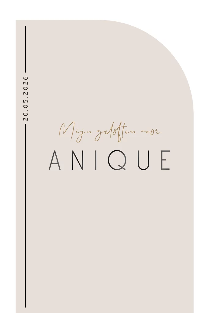 Een basic beige geloften boekje met hoogglans voor je bruiloft. Of je nu je geloften wilt uittypen of de binnenzijde blanco wilt laten om zelf met de hand te schrijven, dit geloftenboekje is een prachtige toevoeging aan jullie ceremonie. Bovendien hoort dit geloftenboekje bij onze trouwkaarten set basic beige, waardoor het perfect aansluit bij jullie trouwuitnodigingen.
