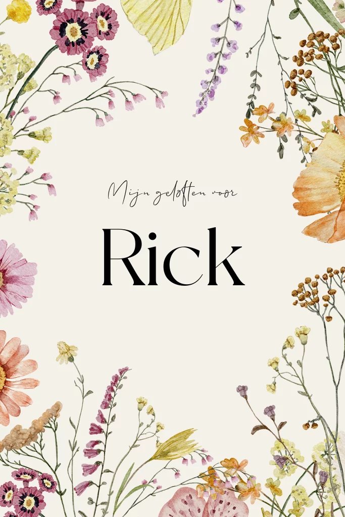 Een kleurrijk geloftenboekje met aquarel veldbloemen. Pas het boekje helemaal zelf aan naar wens in de editor. Typ je geloftes uit of laat de binnenzijde blanco en schrijf de geloften zelf met de hand.